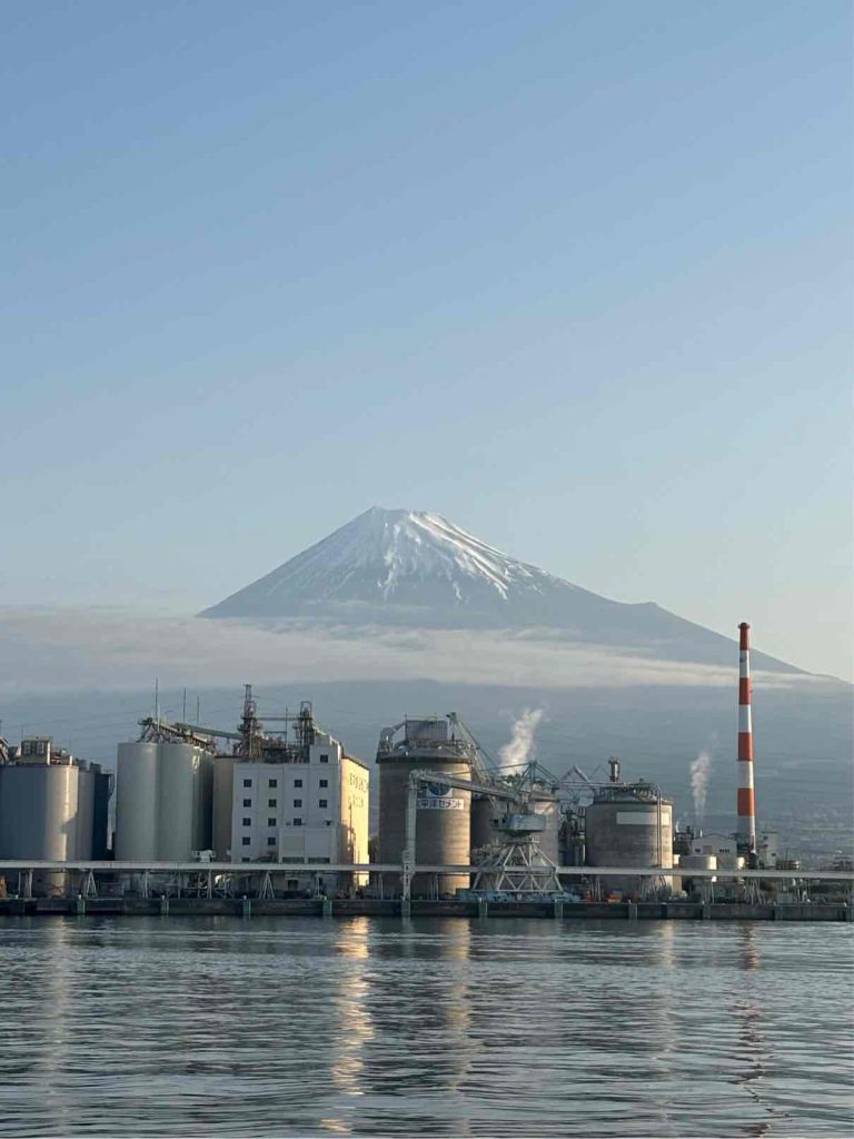 晴れて富士山が見える漁港です。